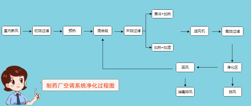 以上內(nèi)容是對“制藥廠空調(diào)系統(tǒng)凈化過程”的介紹,更多相關(guān)內(nèi)容請關(guān)注本站!